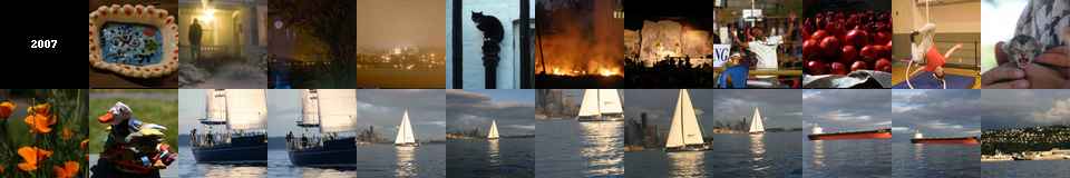 This is a compact photo gallery. The thumbnails are small and pre-generated, so you can easily fit up to 10,000 thumbnails on a single page. Click on a thumbnail to see it in a slideshow. Then you can use the < □ ► > buttons to control playback, and you can click and drag to see the image zoomed in to its actual size. (Please disregard the compression artefacts you see when you zoom in -- we've compressed these images heavily to save bandwidth.)