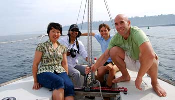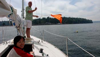 REPORT: Many thanks to Garrett and Joseph for accompanying us on the J-80 sailboat "Taj Mahal". Microsoft and we together donated $100 to the Puget Sound Blood Center for this swim. Thanks also to the Navimatics Charts and Tides iPhone software which we used to predict currents. And thanks Joseph for some excellent photos and videos.