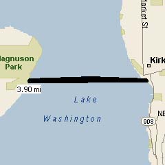 PLAN: Start at Renton Airport Seaplane Dock at the south end of Lake Washington. Swim north along the shore. There's a good break spot after 4 miles at Seward Park, and another after 9 miles under the I-90 bridge. We would benefit from kayak accompaniment across the bay north of Seward Park. Finish at Madison Beach.
