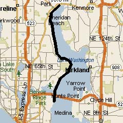 PLAN: Start at Tracy Owen Station Park at the north end of Lake Washington, near Kenmore. Swim south along the shore. There's a good break spot after 4 miles at Matthews Beach Park, and another after 7 miles at Magnuson Park. We would need kayak accompaniment across Union Bay, under the 520 bridge, but the rest of the trip is safe to do solo. End at Madison Beach.